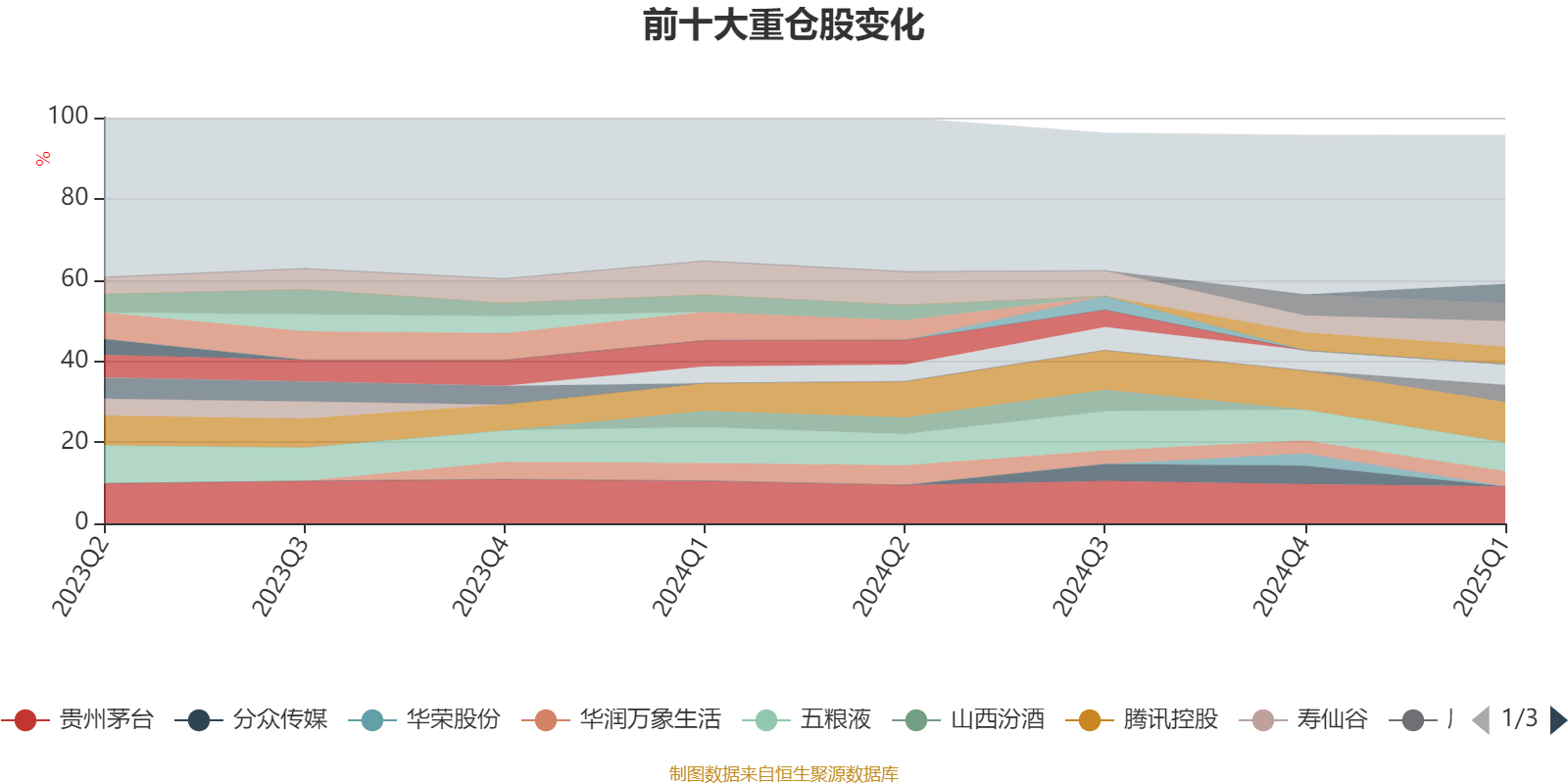該基金持股集中度較高,近2年前十大重倉股集中度長期超過60%。截至2025年一季度末,基金十大重倉股分別是騰訊控股、貴州茅臺、五糧液、紫金礦業(yè)、海爾智家、寶豐能源、昆侖能源、愛瑪科技、盾安環(huán)境、華潤萬象生活。