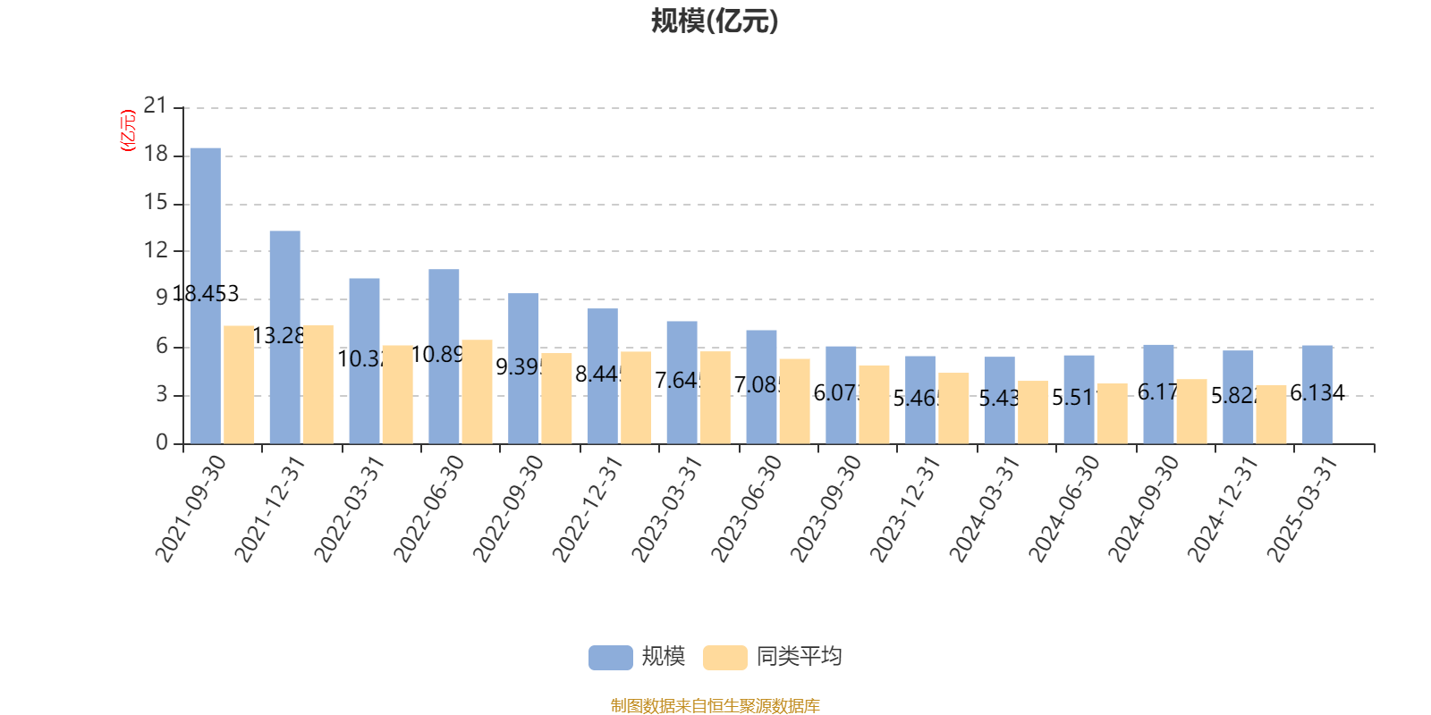 截至2025年一季度末,基金規(guī)模為6.13億元。