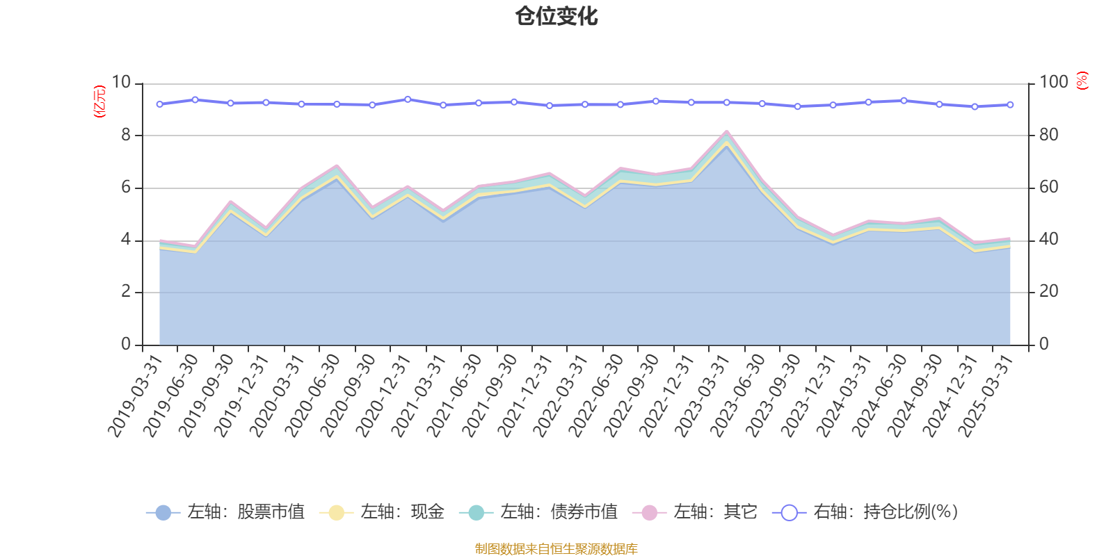 據(jù)定期報(bào)告數(shù)據(jù)統(tǒng)計(jì),基金股票倉(cāng)位長(zhǎng)期保持較高水平,近三年平均股票倉(cāng)位為92.26%,同類(lèi)平均為88.14%。2020年末基金達(dá)到93.92%的最高倉(cāng)位,2024年末最低,為91.1%。