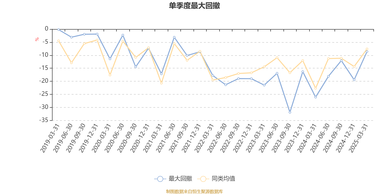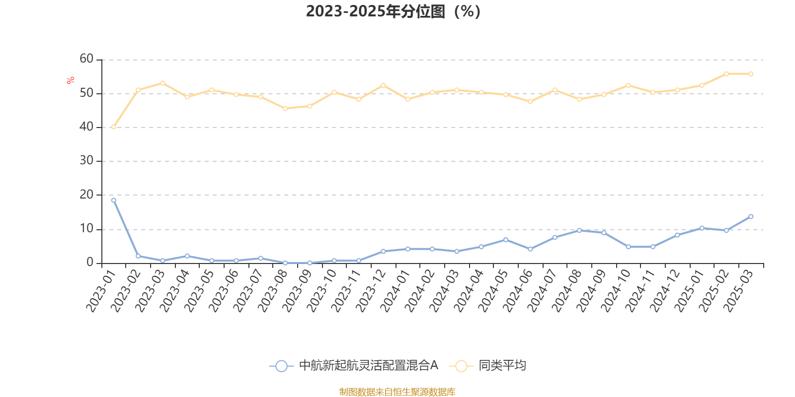 通過所選區(qū)間該基金凈值增長率分位圖,可以觀察該基金與同類基金業(yè)績比較情況。圖為坐標(biāo)原點(diǎn)到區(qū)間內(nèi)某時(shí)點(diǎn)的凈值增長率在同類基金中的分位數(shù)。
