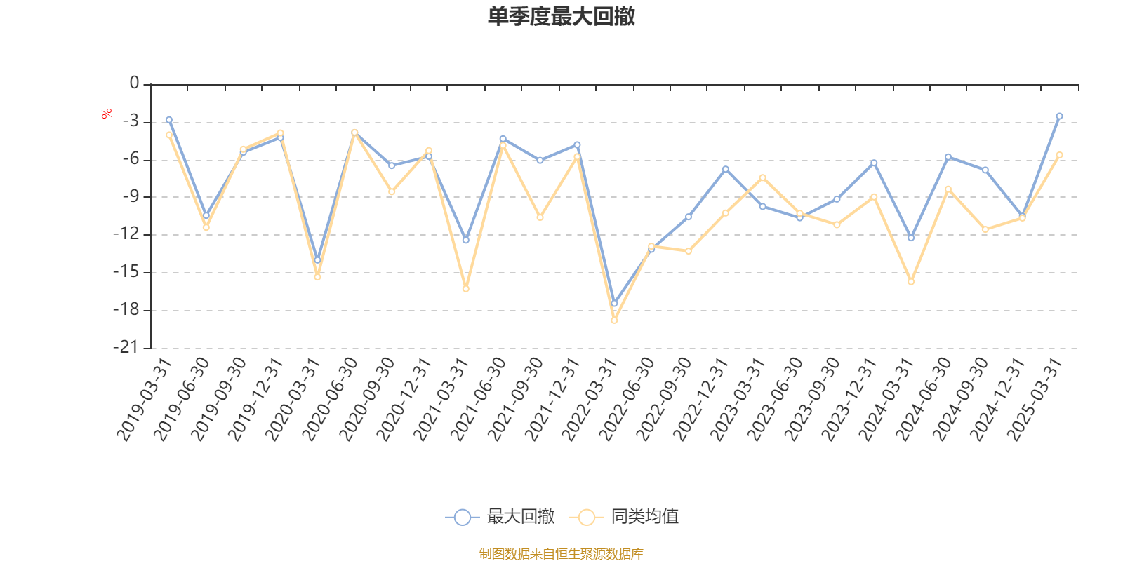 通過所選區(qū)間該基金凈值增長率分位圖,可以觀察該基金與同類基金業(yè)績比較情況。圖為坐標原點到區(qū)間內(nèi)某時點的凈值增長率在同類基金中的分位數(shù)。