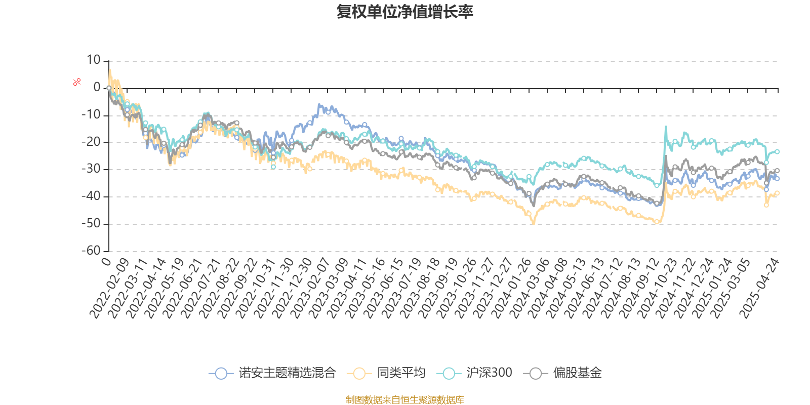 截至4月24日,諾安主題精選混合近三個(gè)月復(fù)權(quán)單位凈值增長率為3.14%,位于同類可比基金186/646;近半年復(fù)權(quán)單位凈值增長率為1.79%,位于同類可比基金246/646;近一年復(fù)權(quán)單位凈值增長率為4.86%,位于同類可比基金390/642;近三年復(fù)權(quán)單位凈值增長率為-13.07%,位于同類可比基金301/494。