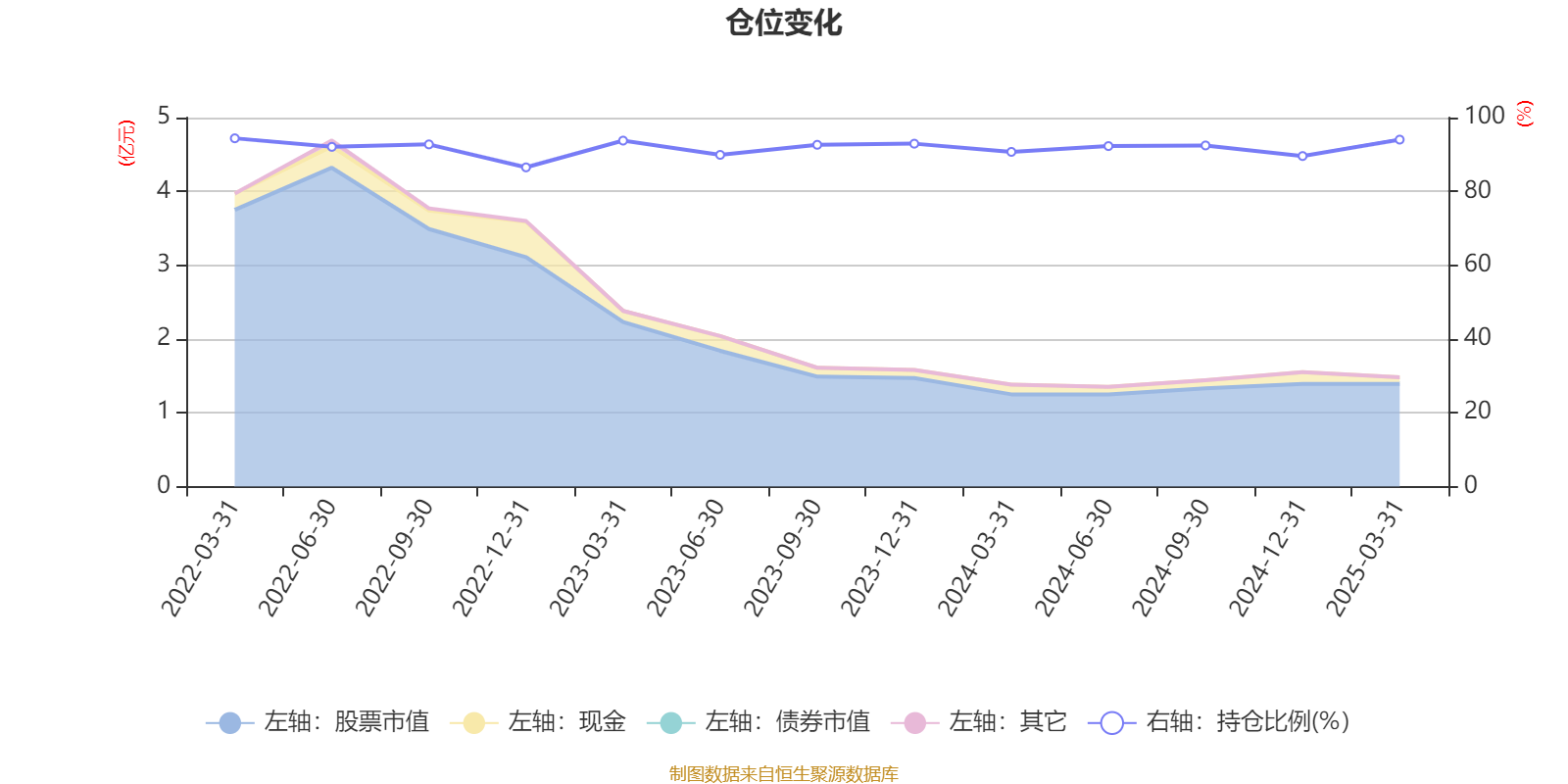 據(jù)定期報(bào)告數(shù)據(jù)統(tǒng)計(jì),近三年平均股票倉(cāng)位為91.63%,同類(lèi)平均為83.56%。2022年一季度末基金達(dá)到94.39%的最高倉(cāng)位,2022年末最低,為86.51%。