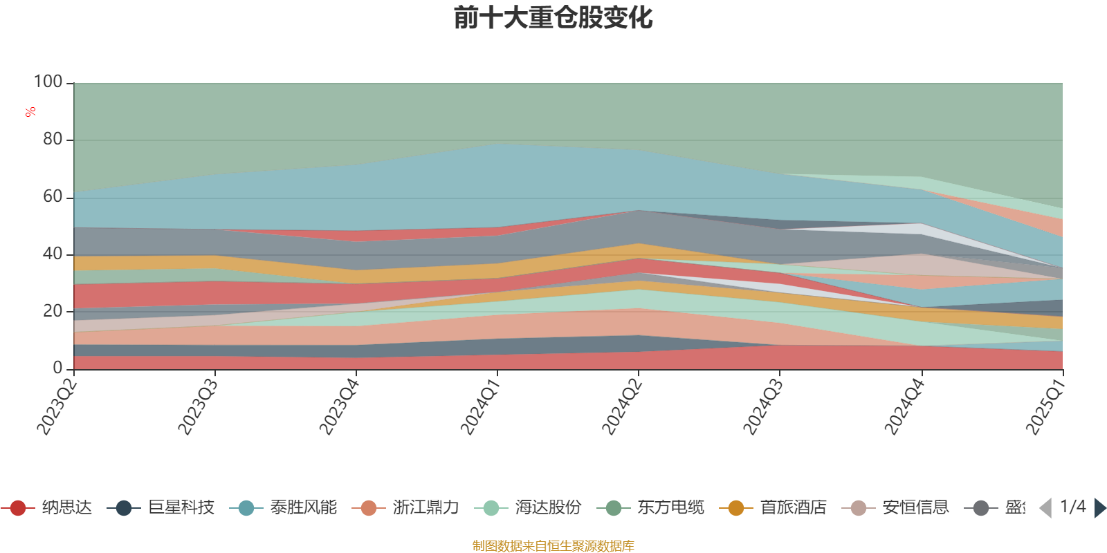 該基金持股集中度較高。截至2025年一季度末,基金十大重倉股分別是三星醫(yī)療、龍凈環(huán)保、潤建股份、納思達、同力日升、首旅酒店、東方電纜、運達股份、科銳國際、泰勝風(fēng)能。