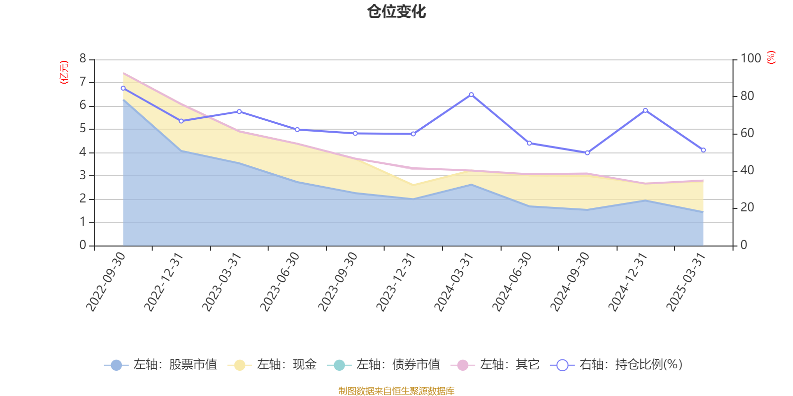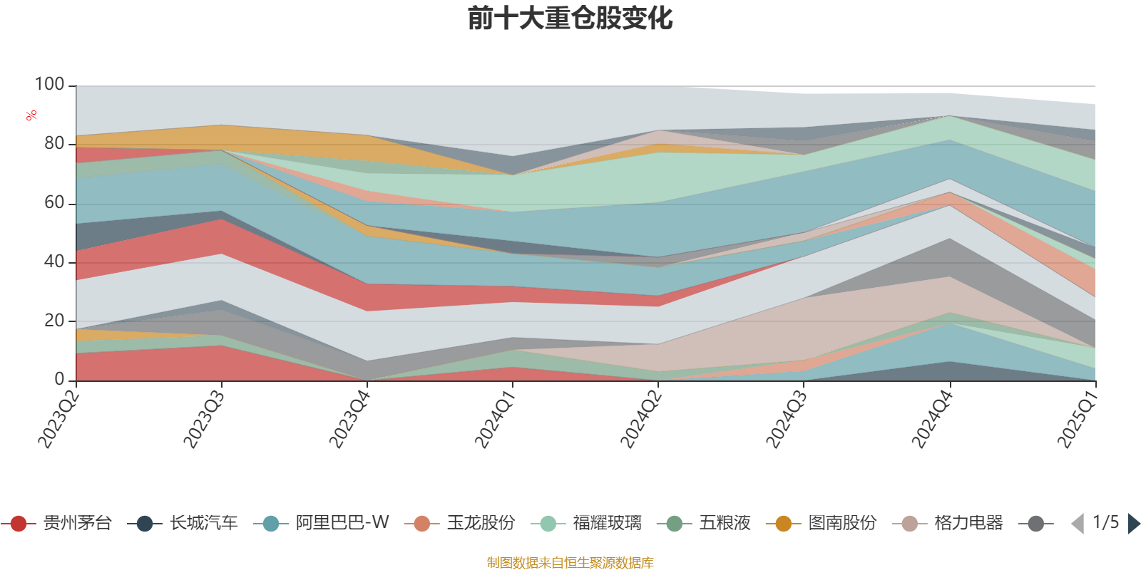 該基金持股集中度較高,近2年前十大重倉股集中度長期超過60%。截至2025年一季度末,基金重倉股分別是美的集團、中國海洋石油、騰訊控股、海爾智家、恩華藥業(yè)、福耀玻璃、紫金礦業(yè)、阿里巴巴-W、新集能源、興業(yè)銀錫、中國海油。