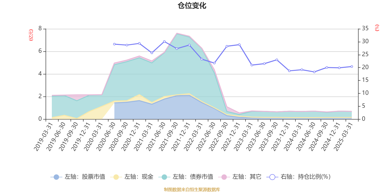 據(jù)定期報告數(shù)據(jù)統(tǒng)計,近三年平均股票倉位為21.73%,同類平均為18.87%。2021年上半年末基金達(dá)到30.08%的最高倉位,2024年上半年末最低,為18.3%。
