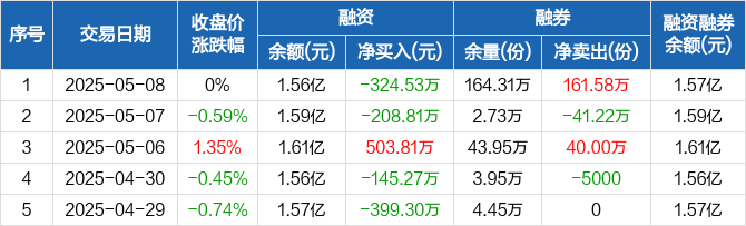 旅游ETF:融資凈償還324.53萬(wàn)元,融資余額1.56億元(05-08)