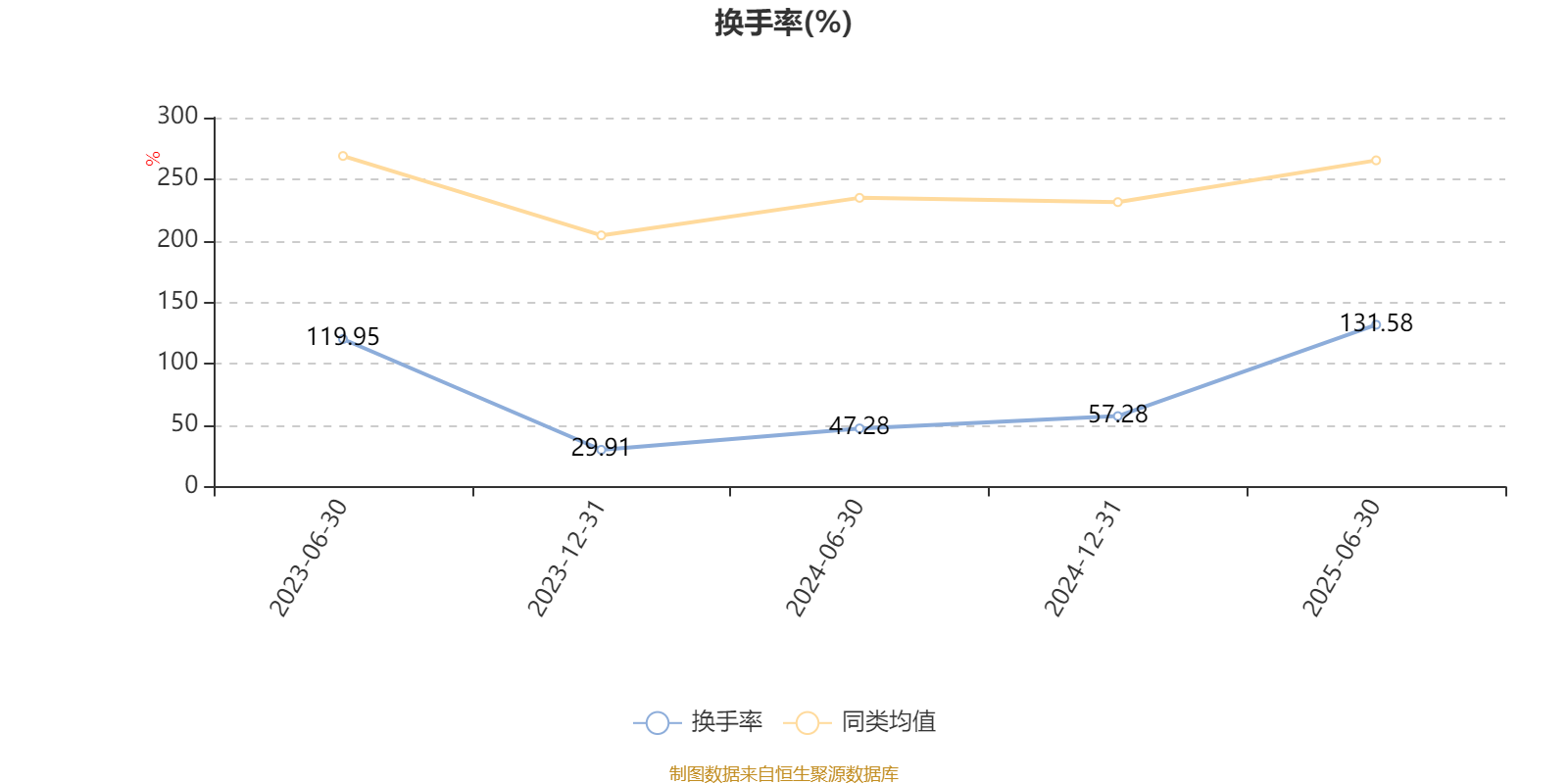 截至2025年6月30日,基金最近半年換手率約131.58%,持續(xù)低于同類均值。