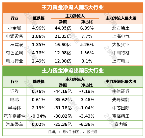 10月9日,A股三大指數(shù)今日集體上漲,截至收盤,上證指數(shù)漲1.32%,深證成指漲1.47%,創(chuàng)業(yè)板指沖高回落漲0.73%,北證50跌0.18%。滬深京三市全天成交額26718億元,較上日放量4746億元。全市場超3100只個股上漲。板塊題材上,貴金屬、可控核聚變、稀土永磁、能源金屬、風(fēng)電設(shè)備、鋼鐵、存儲芯片板塊漲幅居前;影視院線、旅游及酒店、白酒、免稅店板塊跌幅居前。