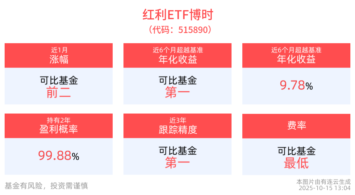 截至2025年10月15日 13:04,中證紅利指數(shù)下跌0.01%。成分股方面漲跌互現(xiàn),中聯(lián)重科領(lǐng)漲2.47%,廈門象嶼上漲2.23%,塔牌集團(tuán)上漲1.97%;中谷物流領(lǐng)跌3.03%,東方環(huán)宇下跌2.37%,華陽(yáng)股份下跌1.95%。紅利ETF博時(shí)(515890)下跌0.20%,最新報(bào)價(jià)1.48元。拉長(zhǎng)時(shí)間看,截至2025年10月14日,紅利ETF博時(shí)近1周累計(jì)上漲2.50%,漲幅排名可比基金2/6。
