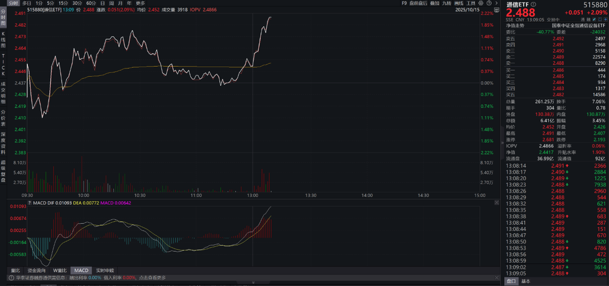 “灣芯展”在深圳舉辦,通信ETF(515880)漲超2%,光模塊占比近50%