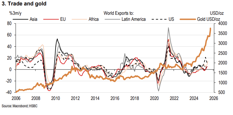 全球?qū)捤傻呢斦c貨幣政策,包括對美聯(lián)儲及其他央行獨立性的威脅,也加劇了全球通脹擔憂,壓低了實際利率,從而讓這種零收益的貴金屬顯得更具吸引力。