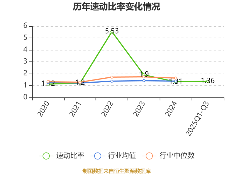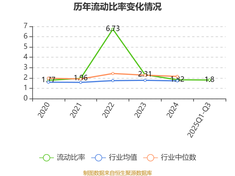 2025年前三季度,公司流動比率為1.8,速動比率為1.36。