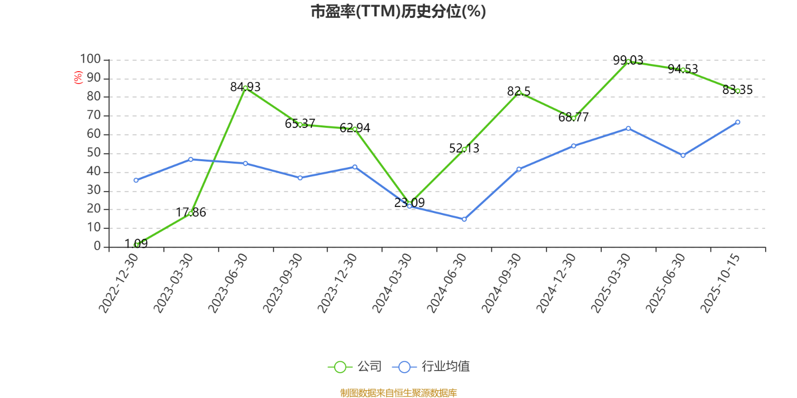 市盈率、市凈率為負(fù)時(shí),不顯示當(dāng)期分位數(shù),會導(dǎo)致折線圖中斷。