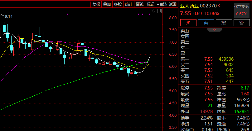醫(yī)藥板塊早間繼續(xù)走強,化學(xué)制藥、生物制品、創(chuàng)新藥、免疫治療等細(xì)分板塊紛紛漲幅居前,亞太藥業(yè)(002370)連續(xù)第3日一字漲停,貴州百靈、羅欣藥業(yè)、新里程等強勢漲停。