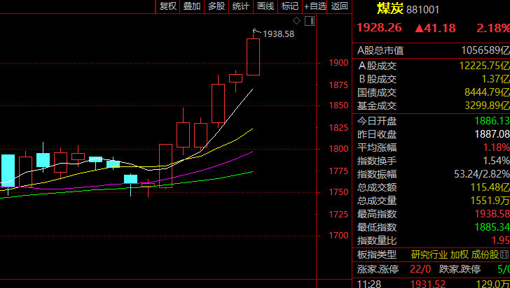 煤炭股早間集體走強,板塊指數(shù)盤初一度放量大漲近3%,創(chuàng)年內(nèi)新高。大有能源再度觸及漲停,此前4日已3度漲停,寶泰隆也一度沖擊漲停,之前同樣4日3漲停,安泰集團、兗礦能源等漲幅居前。