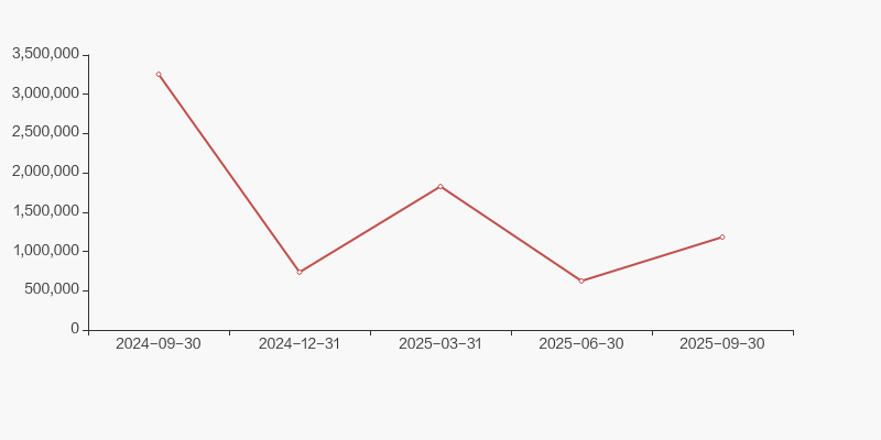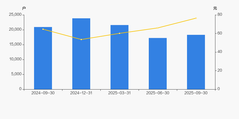 截至2025年9月30日,公司最新總股本為1.3億股,其中流通股本為1.19億股。戶均持有流通股數(shù)量由上期的7075股下降至6502股,戶均流通市值49.71萬元。