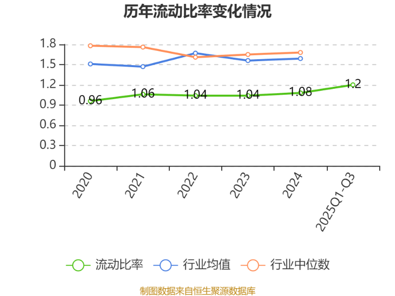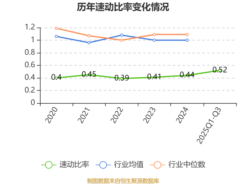2025年前三季度,公司流動比率為1.2,速動比率為0.52。
