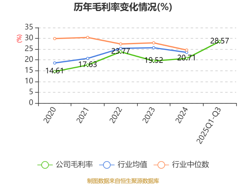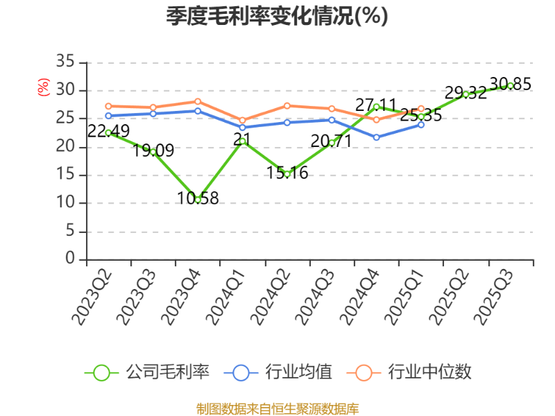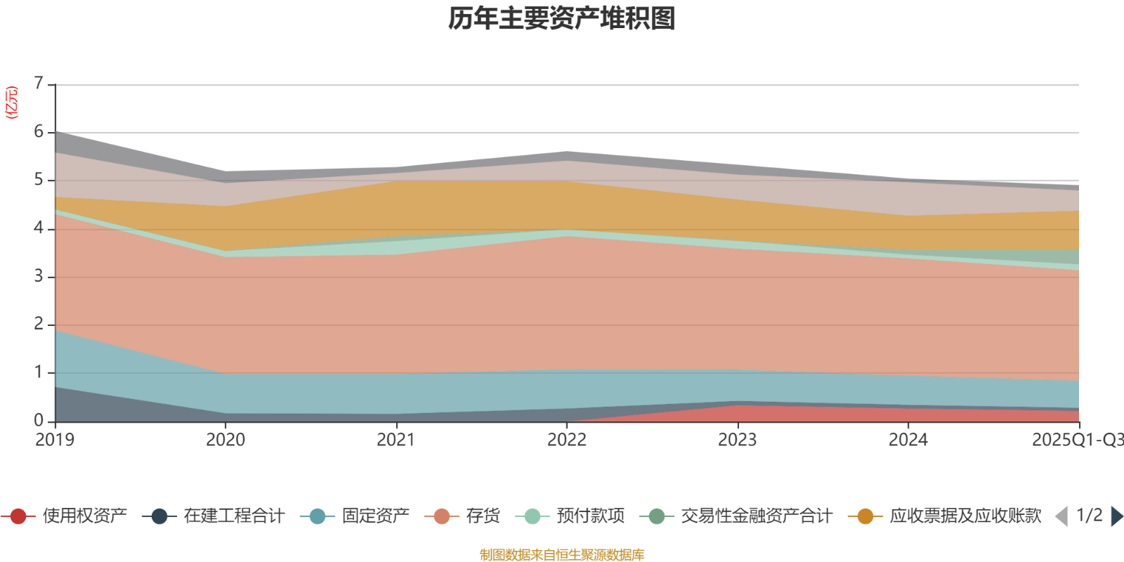 資產重大變化方面,截至2025年三季度末,公司貨幣資金較上年末減少39.77%,占公司總資產比重下降5.25個百分點;交易性金融資產合計較上年末增加200.84%,占公司總資產比重上升4.22個百分點;應收票據及應收賬款較上年末增加14.21%,占公司總資產比重上升2.44個百分點;存貨較上年末減少5.79%,占公司總資產比重下降1.52個百分點。