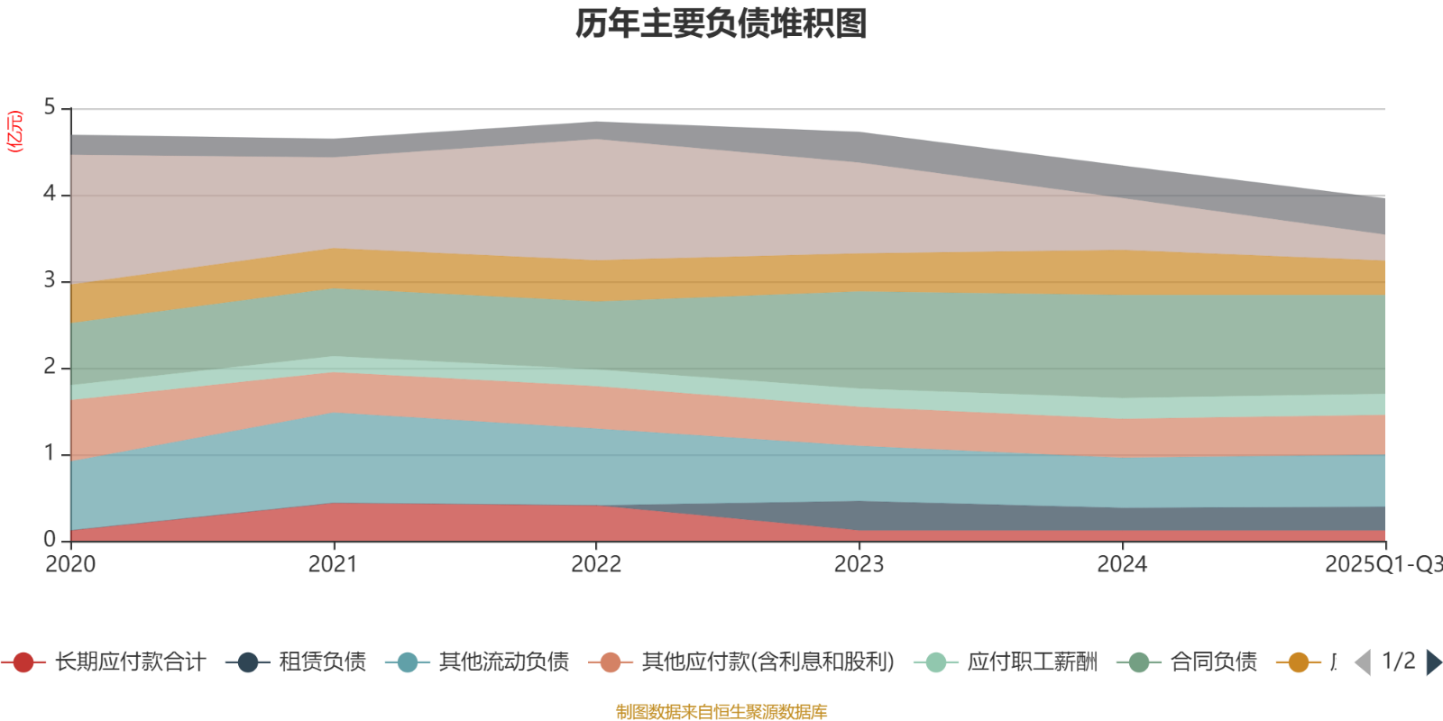 負債重大變化方面,截至2025年三季度末,公司短期借款較上年末減少50%,占公司總資產比重下降5.79個百分點;應付票據及應付賬款較上年末減少23.74%,占公司總資產比重下降2.24個百分點;其他流動負債較上年末增加4.68%,占公司總資產比重上升0.87個百分點;長期遞延收益較上年末增加14.72%,占公司總資產比重上升0.59個百分點。