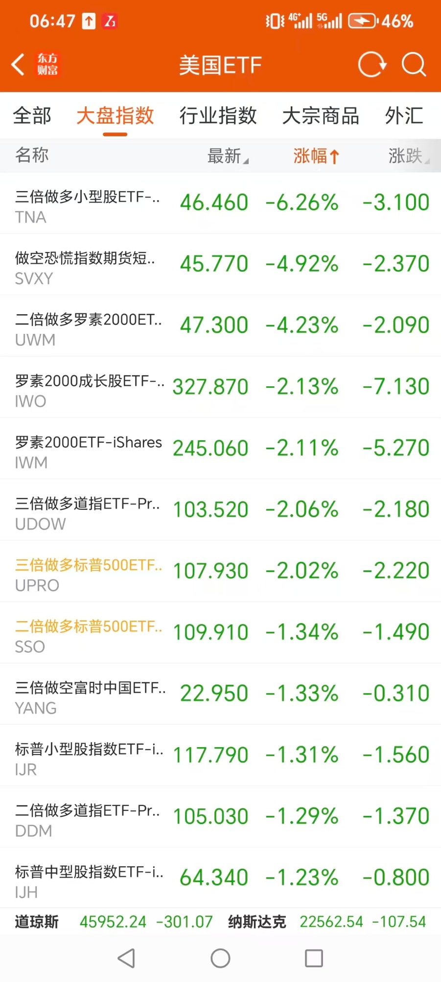 $三倍做多小盤股ETF-Direxion (TNA.US)$ 跌6.26%,成交額9.52億美元。