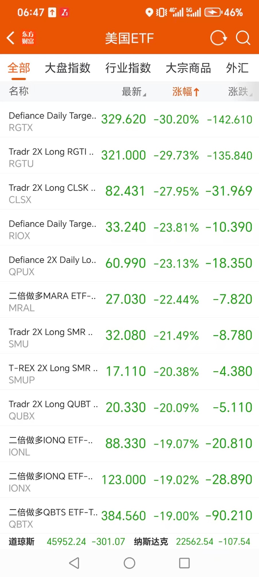美股ETF升幅榜Top5$2倍做空RGTI ETF-Defiance (RGTZ.US)$ 升29.08%,成交額5.14億美元。