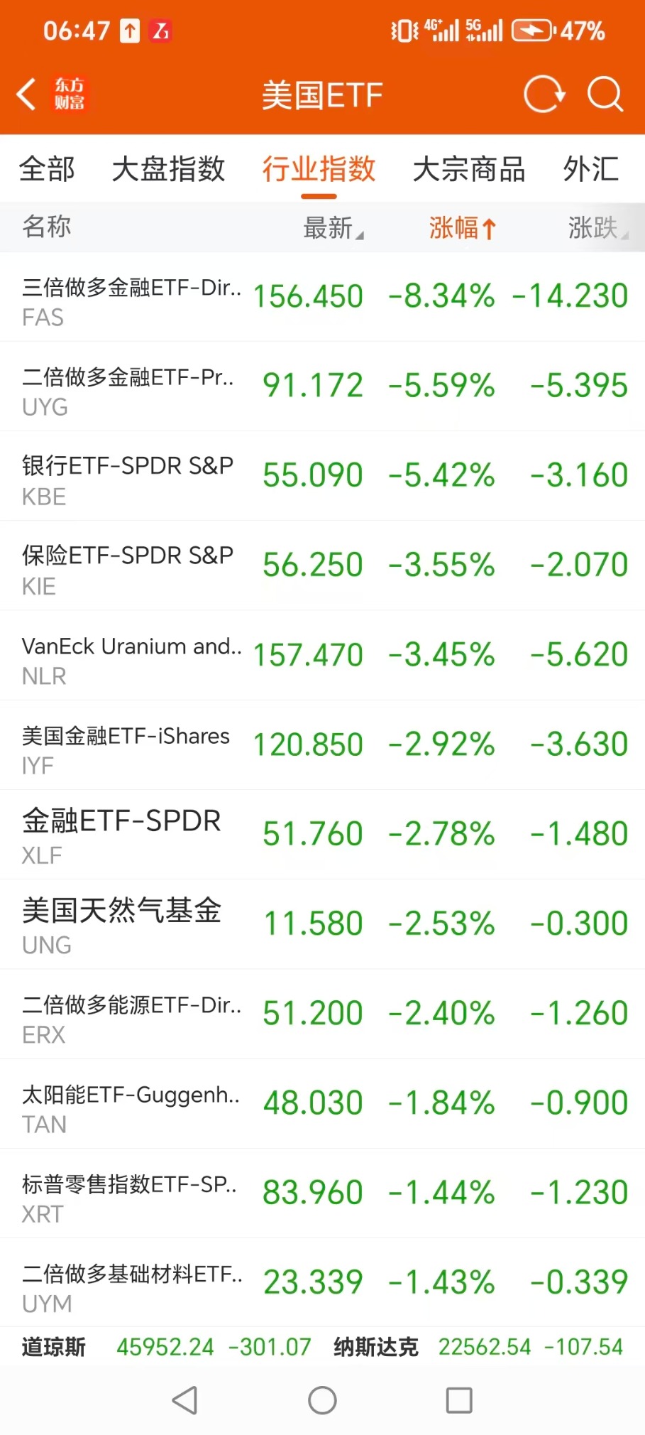 $兩倍做多金融股ETF-ProShares (UYG.US)$ 跌5.59%,成交額234.17萬美元。