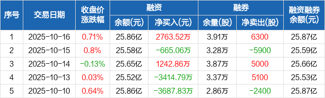 中金公司融資融券信息顯示,2025年10月16日融資凈買入2763.52萬元;融資余額25.86億元,較前一日增加1.08%。