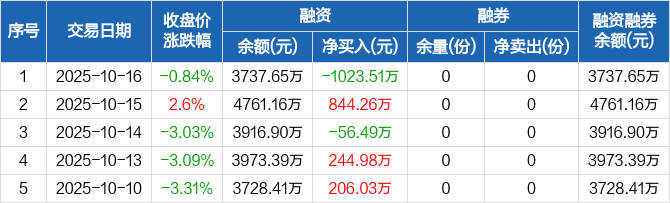 融資方面,當(dāng)日融資買入954.89萬元,融資償還1978.41萬元,融資凈償還1023.51萬元。融券方面,融券賣出0份,融券償還0份,融券余量0份,融券余額0元。融資融券余額合計(jì)3737.65萬元。