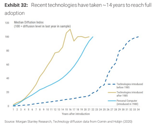 摩根士丹利分析師Stephen Byrd稱(chēng),"雖然AI采用速度可能快于過(guò)去的技術(shù),但我們認(rèn)為現(xiàn)在看到它在經(jīng)濟(jì)數(shù)據(jù)中的體現(xiàn)還為時(shí)過(guò)早,除了企業(yè)投資之外。"他預(yù)計(jì)AI的影響要到本十年末及下個(gè)十年才會(huì)出現(xiàn)在經(jīng)濟(jì)數(shù)據(jù)中。