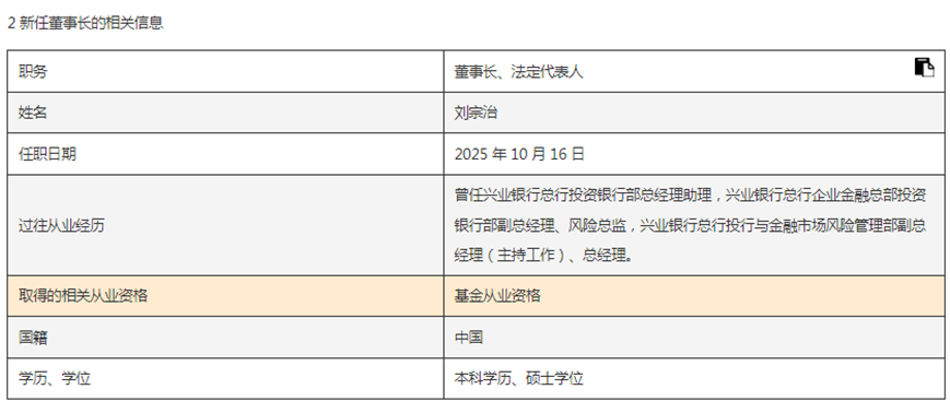 興業(yè)基金董事長(zhǎng)變更