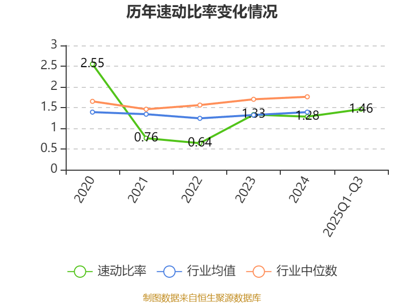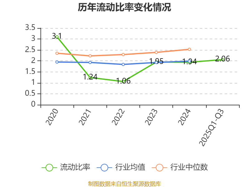 2025年前三季度,公司流動(dòng)比率為2.06,速動(dòng)比率為1.46。