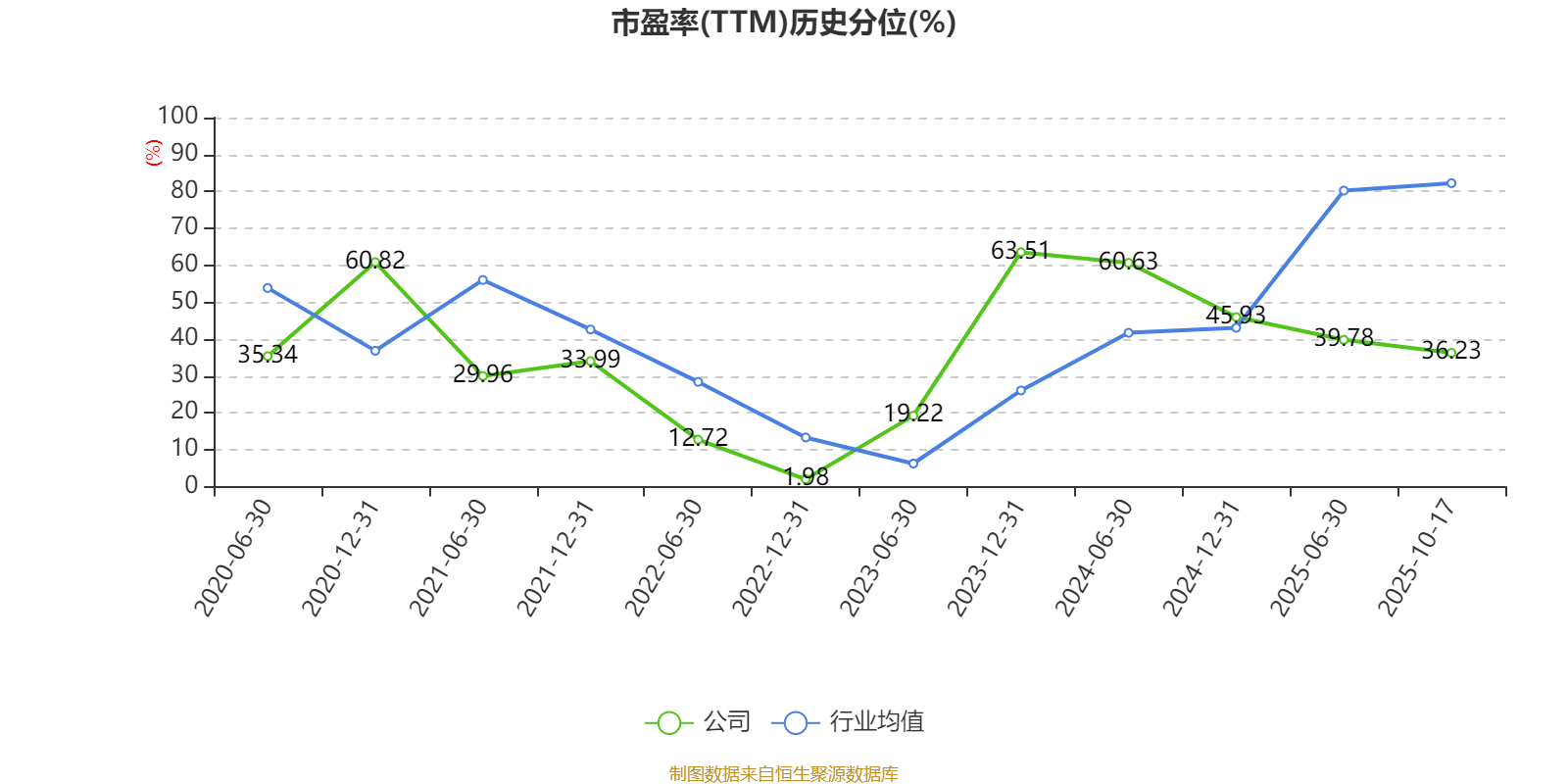市盈率、市凈率為負(fù)時(shí),不顯示當(dāng)期分位數(shù),會(huì)導(dǎo)致折線圖中斷。