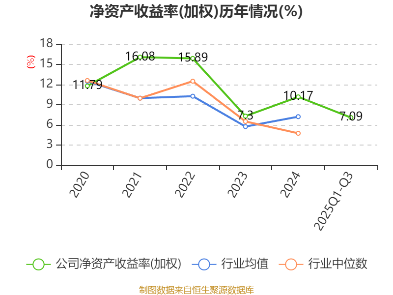 盈利能力方面, 2025年前三季度公司加權(quán)平均凈資產(chǎn)收益率為7.09%,同比下降0.91個(gè)百分點(diǎn)。公司2025年前三季度投入資本回報(bào)率為4.78%,較上年同期下降0.65個(gè)百分點(diǎn)。