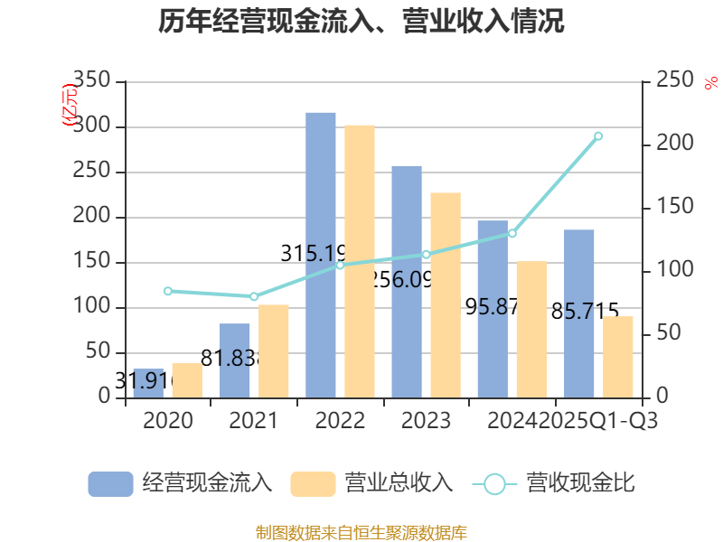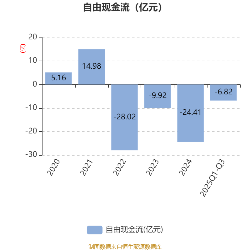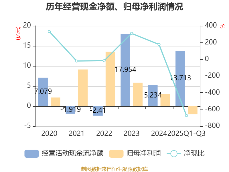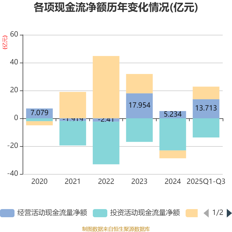 2025年前三季度,公司經(jīng)營活動現(xiàn)金流凈額為13.71億元,同比增加18.56億元;籌資活動現(xiàn)金流凈額9.05億元,同比增加1.31億元;投資活動現(xiàn)金流凈額-13.76億元,上年同期為-25.81億元。