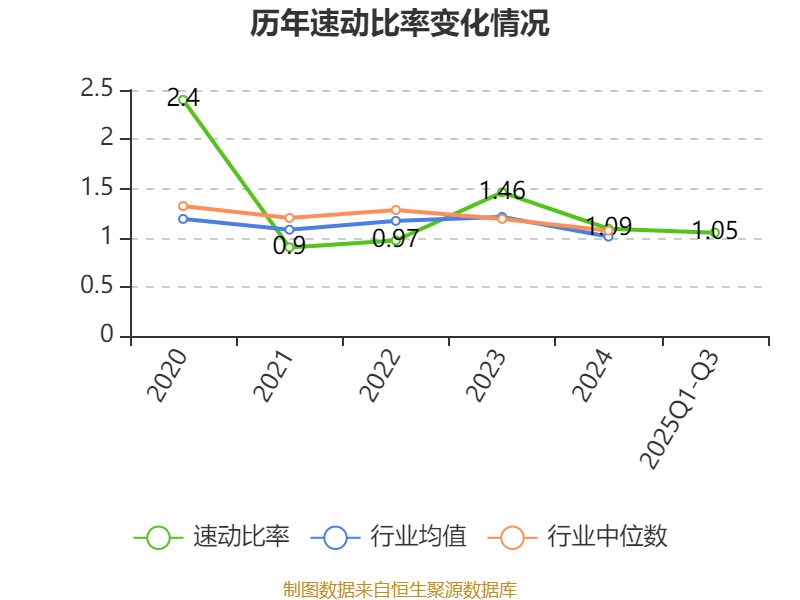 2025年前三季度,公司流動比率為1.25,速動比率為1.05。