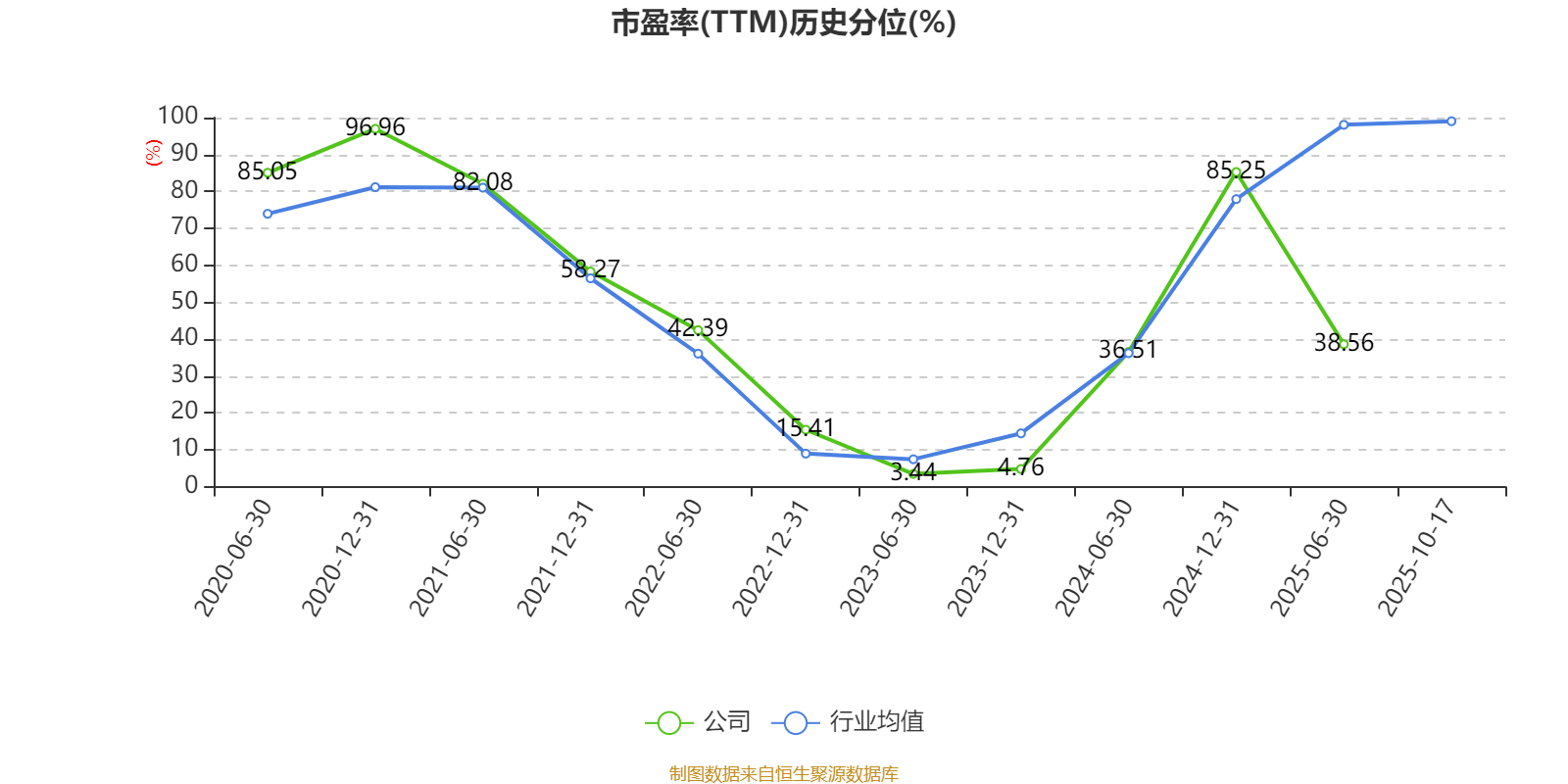 市盈率、市凈率為負時,不顯示當期分位數(shù),會導致折線圖中斷。