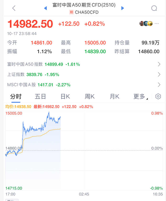 富時(shí)中國(guó)A50期貨指數(shù)漲約0.8%。