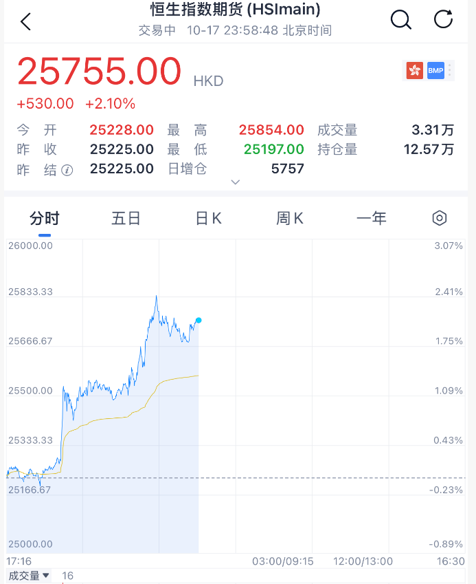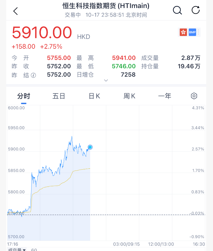 港股夜盤,兩大指數(shù)期貨大漲,其中,恒生指數(shù)期貨漲超2%,恒生科技指數(shù)期貨漲近3%。