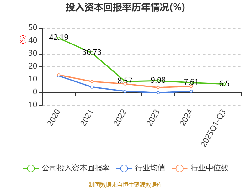 盈利能力方面, 2025年前三季度公司加權平均凈資產收益率為7.56%,同比上升0.53個百分點。公司2025年前三季度投入資本回報率為6.5%,較上年同期上升1.17個百分點。