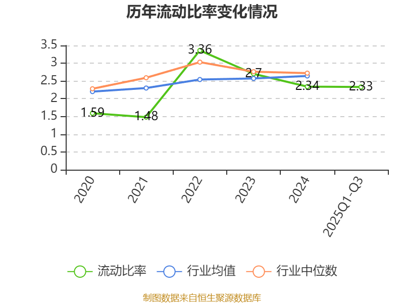 2025年前三季度,公司流動比率為2.33,速動比率為2.03。