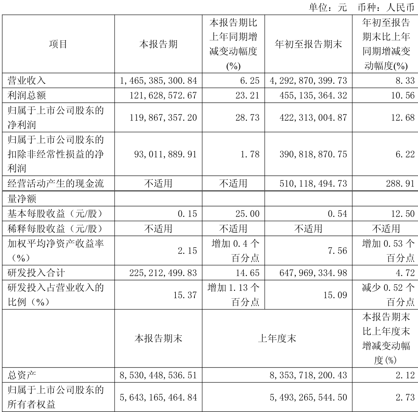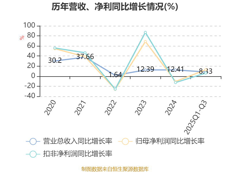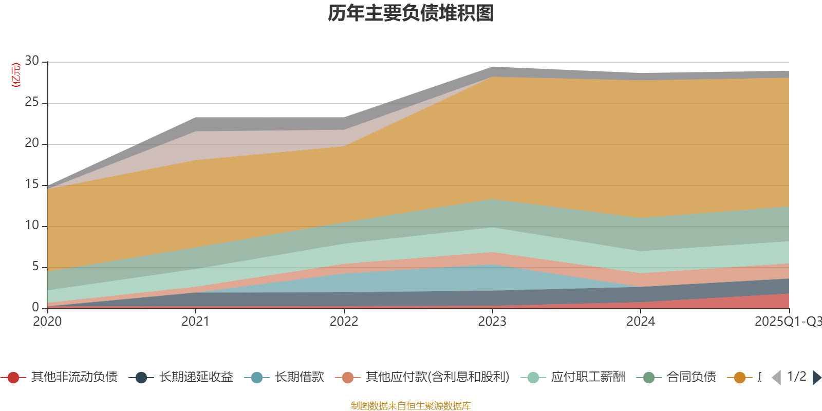 負債重大變化方面,截至2025年三季度末,公司應付票據(jù)及應付賬款較上年末減少6.49%,占公司總資產比重下降1.69個百分點;其他非流動負債較上年末增加139.79%,占公司總資產比重上升1.19個百分點;租賃負債較上年末減少92.36%,占公司總資產比重下降0.18個百分點;其他應付款(含利息和股利)較上年末增加10.65%,占公司總資產比重上升0.17個百分點。