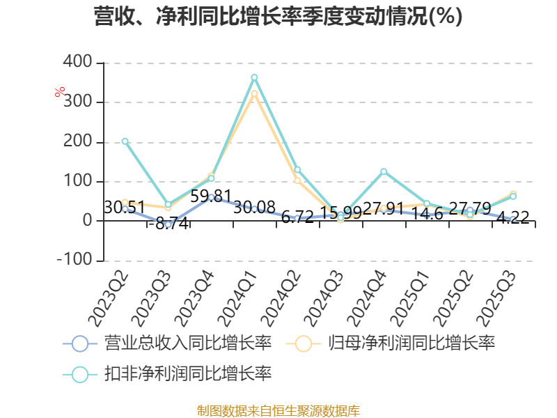 資產(chǎn)重大變化方面,截至2025年三季度末,公司交易性金融資產(chǎn)合計較上年末增加166.33%,占公司總資產(chǎn)比重上升11.58個百分點;貨幣資金較上年末減少41.7%,占公司總資產(chǎn)比重下降9.73個百分點;其他非流動資產(chǎn)較上年末增加43.61%,占公司總資產(chǎn)比重上升1.83個百分點;存貨較上年末減少4.43%,占公司總資產(chǎn)比重下降1.76個百分點。