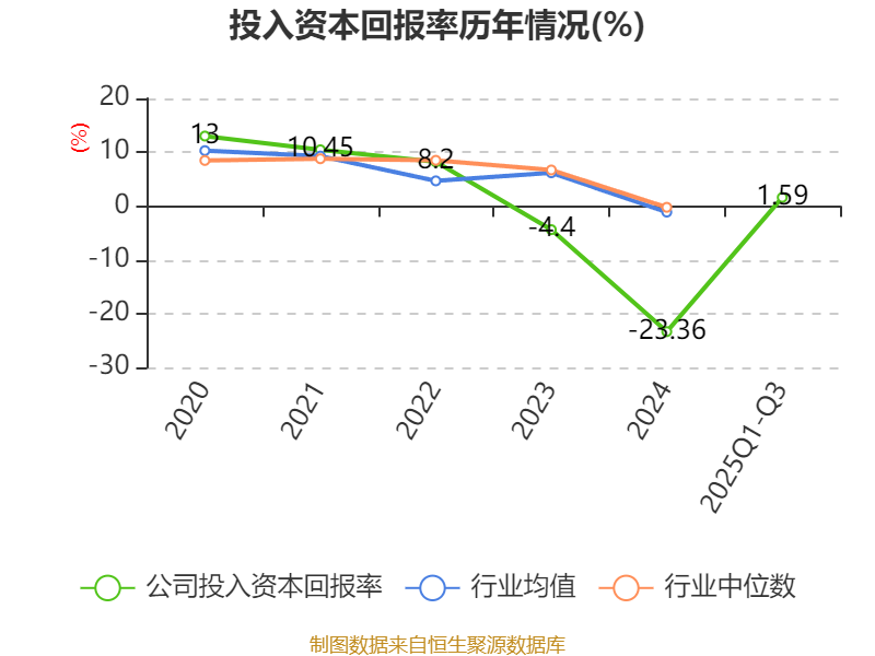 盈利能力方面, 2025年前三季度公司加權平均凈資產收益率為2.07%,同比上升28.84個百分點。公司2025年前三季度投入資本回報率為1.59%,較上年同期上升11.87個百分點。