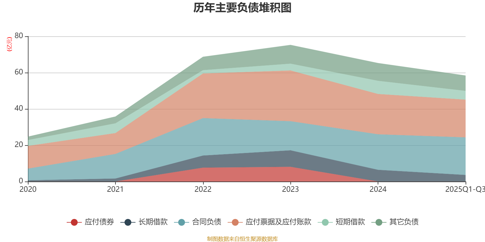 負債重大變化方面,截至2025年三季度末,公司合同負債較上年末增加5.91%,占公司總資產比重上升3.24個百分點;長期借款較上年末減少43.98%,占公司總資產比重下降2.88個百分點;短期借款較上年末減少33.6%,占公司總資產比重下降2.33個百分點;應付票據(jù)及應付賬款較上年末減少6.48%,占公司總資產比重上升0.3個百分點。