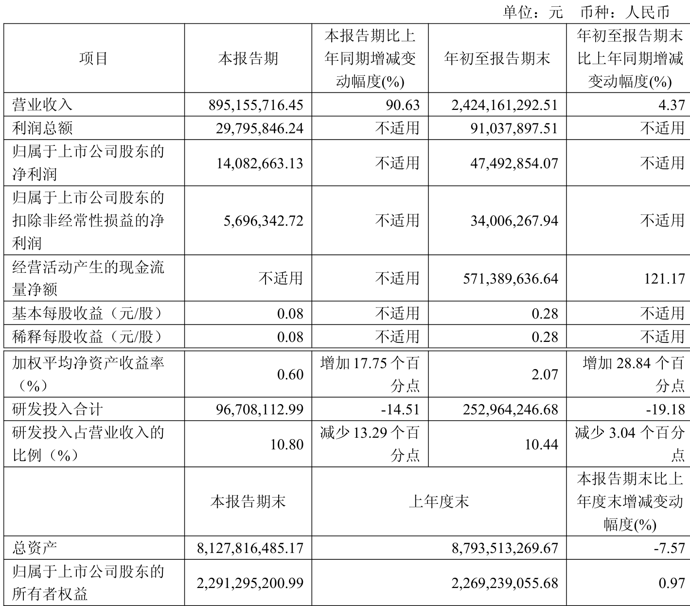 中證智能財訊利元亨(688499)10月21日披露2025年第三季度報告。前三季度公司實現(xiàn)營業(yè)總收入24.24億元,同比增長4.37%;歸母凈利潤4749.29萬元,同比扭虧;扣非凈利潤3400.63萬元,同比扭虧;經營活動產生的現(xiàn)金流量凈額為5.71億元,同比增長121.17%;報告期內,利元亨基本每股收益為0.28元,加權平均凈資產收益率為2.07%。