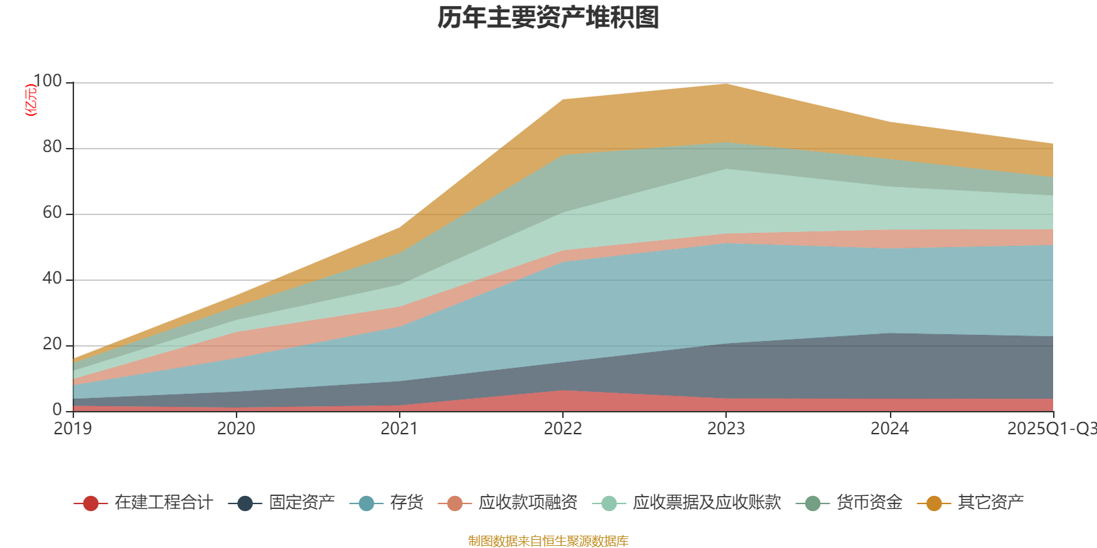 資產重大變化方面,截至2025年三季度末,公司存貨較上年末增加7.79%,占公司總資產比重上升4.86個百分點;貨幣資金較上年末減少32.6%,占公司總資產比重下降2.58個百分點;應收票據(jù)及應收賬款較上年末減少21.75%,占公司總資產比重下降2.28個百分點;固定資產較上年末減少4.69%,占公司總資產比重上升0.71個百分點。