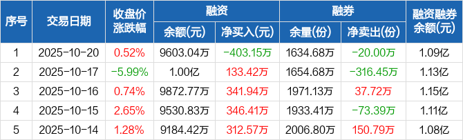 光伏ETF:融資凈償還403.15萬元,融資余額9603.04萬元(10-20)