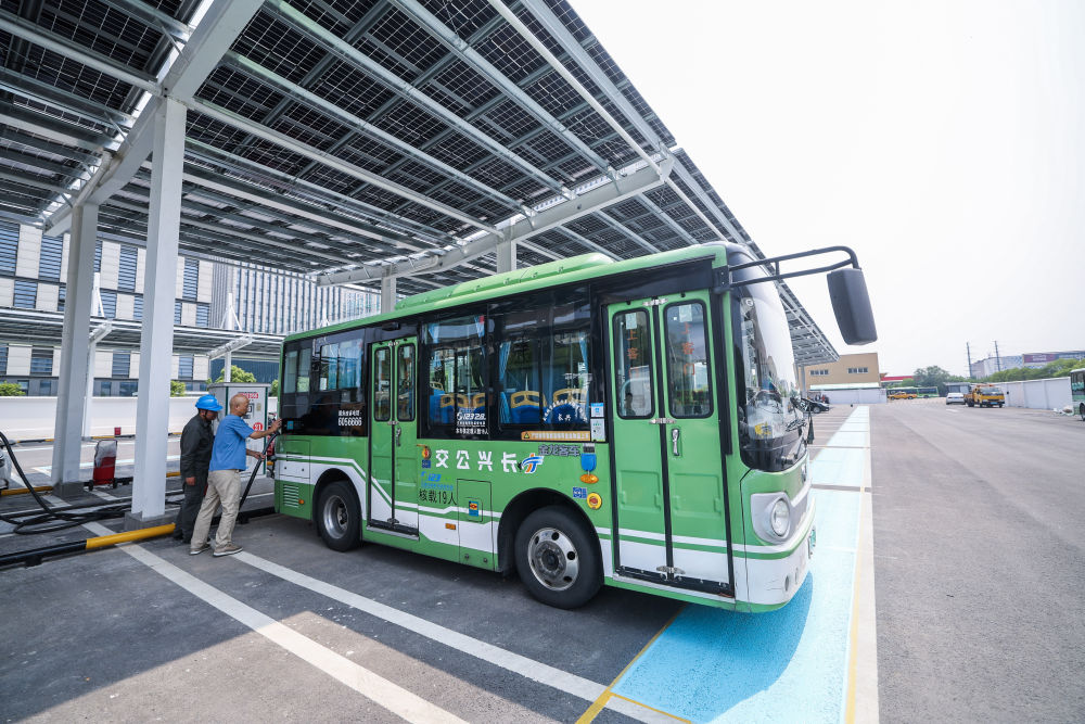 5月27日,浙江省湖州市長(zhǎng)興公交總站光儲(chǔ)充一體化公交充電站正式并網(wǎng)投運(yùn)。新華社記者徐昱攝
