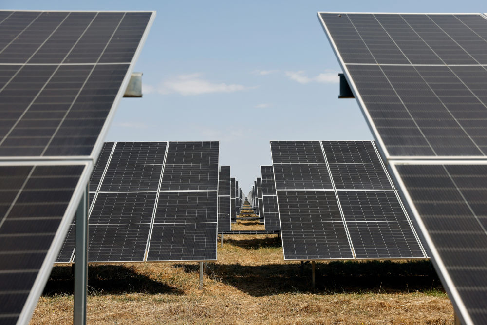 8月12日,中國電氣裝備集團(tuán)旗下平高集團(tuán)國際工程有限公司承建的羅馬尼亞31.8兆瓦光伏電站項(xiàng)目竣工。這是在項(xiàng)目現(xiàn)場(chǎng)拍攝的光伏發(fā)電板。新華社發(fā)(克里斯泰爾攝)